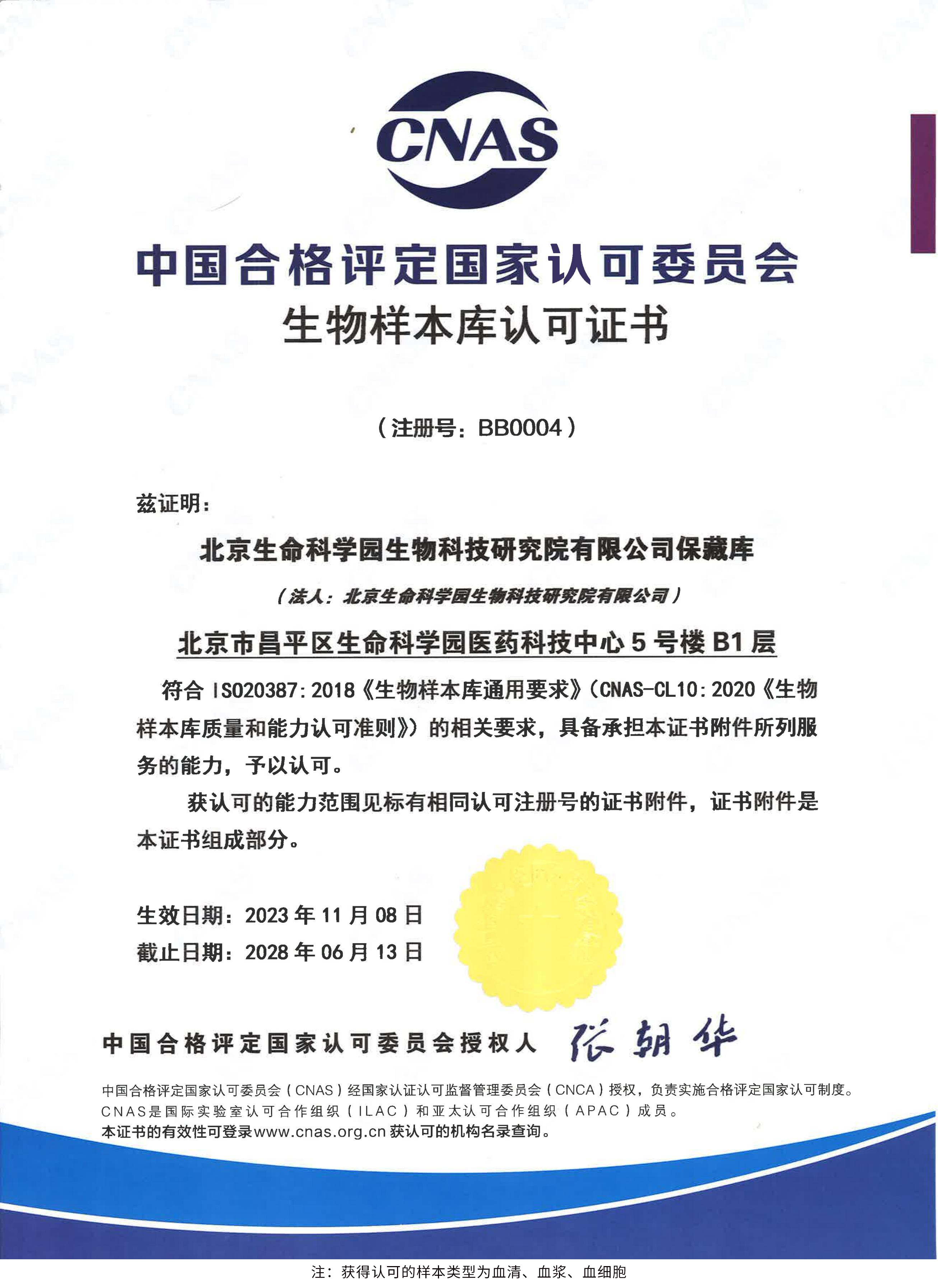 北京生命科學(xué)園生物科技研究院(以下簡(jiǎn)稱“北京生物樣本資源庫”)(Biobank of Life Science Park,簡(jiǎn)寫“BoLSP”)是一家由北京市科委和中關(guān)村生命科學(xué)園共同支持設(shè)立的第三方生物樣本庫公共服務(wù)平臺(tái),秉承北京重大疾病臨床數(shù)據(jù)和樣本資源庫(以下簡(jiǎn)稱“北京庫”)(Beijing Biobank of Clinical Resources,BBCR)十余年的發(fā)展成果,聚合眾多臨床樣本專家的專業(yè)共識(shí),致力于在生命科學(xué)、生物醫(yī)藥研究領(lǐng)域發(fā)揮銜接樣本資源持有者與研究者的橋梁作用,解決生物樣本資源開發(fā)上下游信息不對(duì)稱、資源共享困難等問題。研究院在北京中關(guān)村生命科學(xué)園昌平園區(qū)建立了2000㎡生物樣本庫,最大存儲(chǔ)規(guī)模達(dá)1000萬份。研究院遵循CNAS-CL10:2020《生物樣本庫質(zhì)量和能力認(rèn)可準(zhǔn)則》,同時(shí)結(jié)合北京庫過去十年的工作經(jīng)驗(yàn)與教訓(xùn),建立了一套完善的生物樣本保藏質(zhì)量管理體系,從人、機(jī)、料、法、環(huán)、控多個(gè)角度,實(shí)現(xiàn)生物樣本保藏過程的全面質(zhì)量控制,先后獲得國(guó)家科技部頒發(fā)的人類遺傳資源保藏行政許可證書和中國(guó)合格評(píng)定國(guó)家認(rèn)可委員會(huì)(China National Accreditation Service for Conformity Assessment,CNAS)頒發(fā)的“CNAS認(rèn)可證書”。